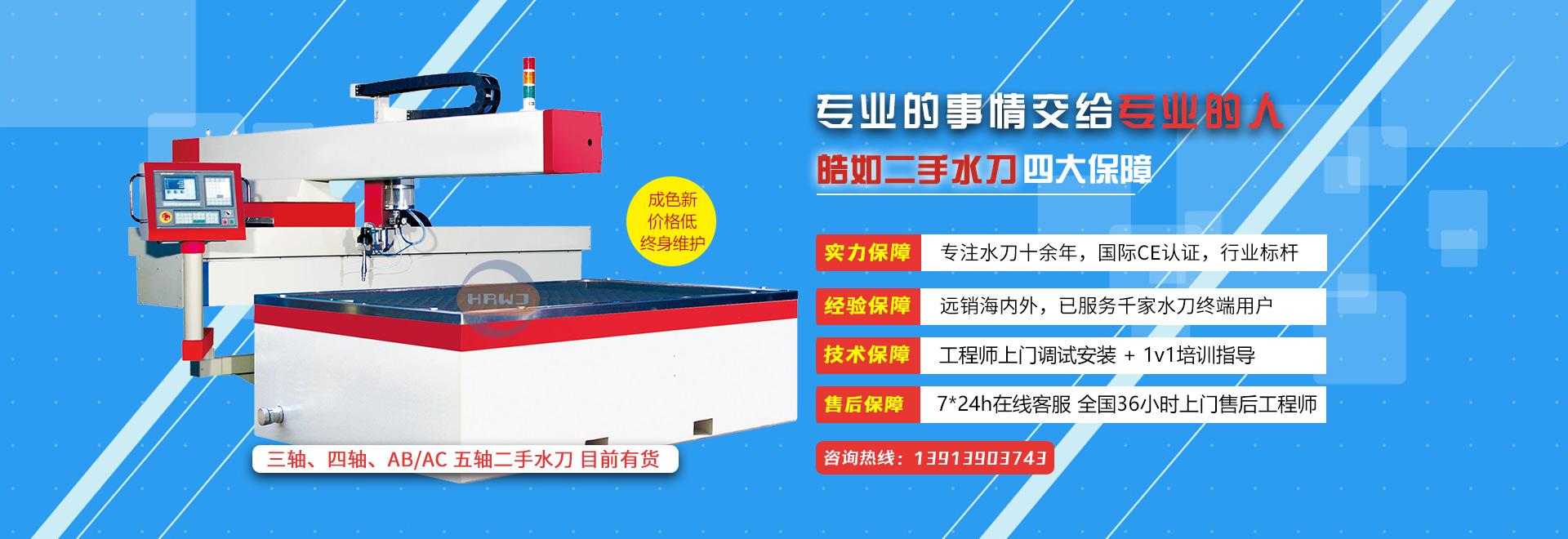 ① 凡是在我司采購的二手水刀,都可以享受大件長期質保,保修期內的維修服務;