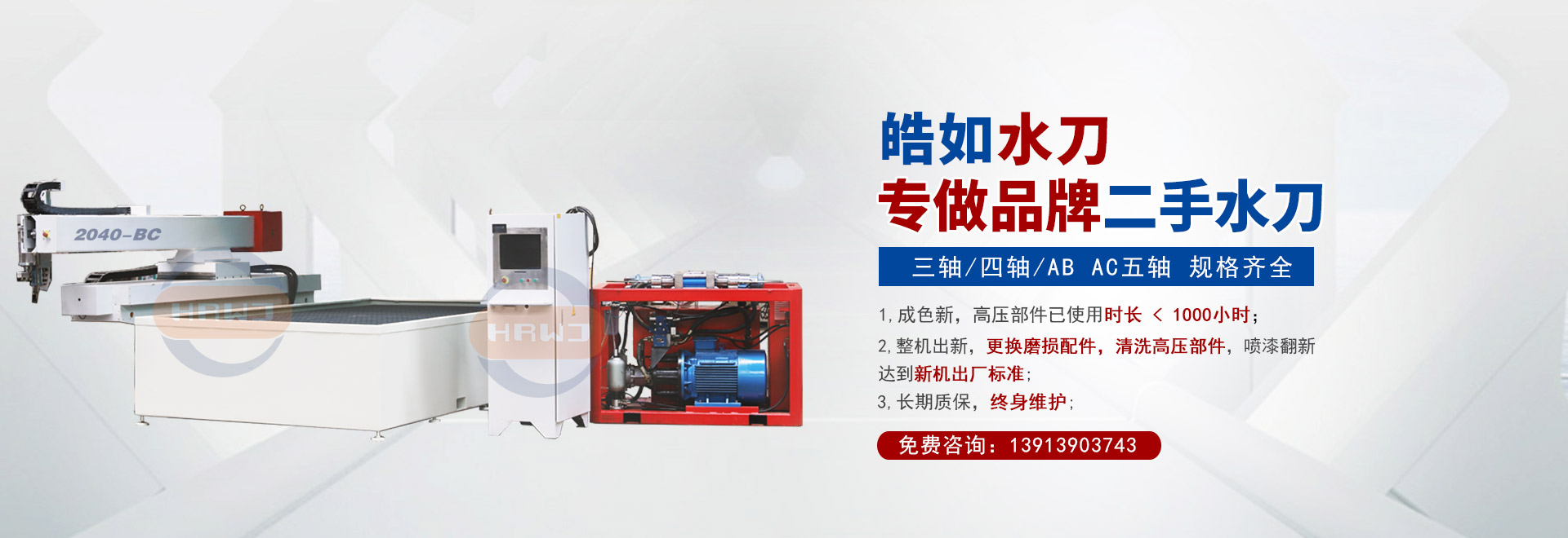 ① 直接從水刀終端用戶那里回購知名品牌水刀,經32道工序質檢,保證來源,保障品質;